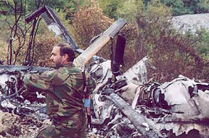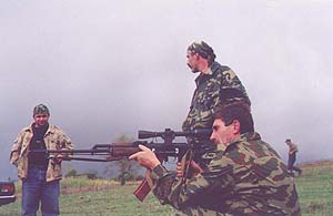 Военный конфликт в Абхазии начался в конце сентября накануне мандаринового сезона с захвата пришлыми боевиками сел Георгиевское и Наа, где были убиты несколько мирных жителей. Позже выстрелом из портативной зенитной ракеты был сбит вертолет с миссией военных наблюдателей. Погибли шесть сотрудников ООН и три члена экипажа. С этого момента конфликт в Кодорском ущелье приобрел видимые черты и вылез на экраны мировых телекомпаний. В Сухуми началась мобилизация резервистов, и тысячи ополченцев двинулись в горы защищать свою республику от непрошеных гостей. Людей Руслана Гелаева удалось остановить в сорока километрах от столицы у горы Сахарная Голова. Здесь часть боевиков попала в окружение. Армянское село Наа, всего около сотни дворов, раскинутых на правом берегу Кодоры, превратилось в укрепленный форпост: снайперы на крышах домов, оборонительные сооружения из мешков с песком и группы ополченцев, окопавшиеся в садах и огородах сельской окраины. Боевого опыта абхазам не занимать. Но на войне трагическое и смешное всегда рядом. По словам майора милиции Отара Бгамба, отдельные сцены в Наа напоминали эпизоды из грузинских кинокомедий. Отар Бгамба: У них - разрозненные группы, кушать хотят. Мы выдели вчера и позавчера, с этой сопки спускались, где кукуруза, и начали за курами бегать. Там такие заросли, видимо, они изучили уже места, сразу прятались. Хотели поговорить с ними, я думаю, что если предложение дадим им сдаться, они сдадутся. Голодные, холодные - кому приятно в лесу прятаться? Мумин Шакиров: Какова была ваша реакция? - Реакция - начали стрелять в них. Мумин Шакиров: Отчаявшиеся от голода бойцы Руслана Гелаева, смертельно рискуя жизнью, нередко переодевались в гражданскую одежду и в поисках пищи спускались в село. Но бдительные местные жители всегда были начеку и активно помогали военным. Один из таких инцидентов произошел среди бела дня в том же Наа. Подозрительного человека обнаружила у себя во дворе пенсионерка Валентина Кагриманян. Валентина Кагриманян: Я была дома одна и смотрю - по ступенькам кто-то поднимается. Я обычно знаю, что солдаты здесь ходят в военной форме, а то - в простом, и в окна смотрит. Когда он обернулся в мою сторону, я вышла, как будто я его не заметила, и всем прибежала, сообщила - не знаю, кто там, может быть, это разведывательная их группа, или кто. Такой здоровый, с автоматом в руках. Все страшно, малейший шорох, малейшее что-нибудь - валерьянку пьешь. Пусть моя соседка, у нее спим мы ночью, боимся домой приходить. Этого никто, наверное, не знает, не понимает. Мы две войны пережили за десять лет, это вы не знаете, что это такое. Почему все дружно не будем жить, ну почему? Грузинам здесь что не хватало? Почему они так делают? Они же жили, они самые главные посты занимали, грузины. Не абхазцы были на главных постах, а они были. Что им не хватало, что они войной пошли сюда? Мумин Шакиров: На этот раз непрошеный гость сумел скрыться, хотя пару дней назад резервисты взяли в плен двух человек - чеченца и кабардинца, прямо во время трапезы в одном из заброшенных домов. Не имея поддержки среди населения, трудно рассчитывать на успешное ведение партизанской войны - это один из главных просчетов организаторов силовой акции в горах Кодора. А тут еще капризная осень в горах, постоянные дожди, плотные туманы и ранний снег. В этих условия